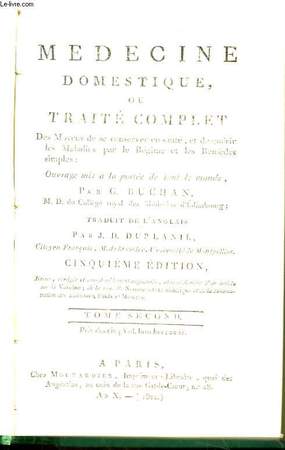 Ou Traité Complet des Moyens de se conserver en santé, et de guérir les Maladies, par le régime & les remèdes simples. Traduit de l'anglais par J.D. Duplanil. Classification Dewey : 610-Sciences médicales. Médecine