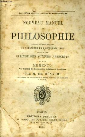 Collection Nouvelle d'Ouvrages Philosophiques. Programme du 8 sept. 1863 suivi d'un' analyse des auteurs prescrits, et d'un mémento. Classification Dewey : 190-Philosophie occidentale moderne