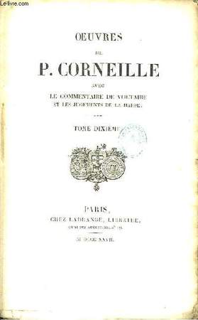 Avec le commentaire de Voltaire et les jugements de La Harpe. Trois discours de Pierre Corneille - Poésies diverses ... Classification Dewey : 840.04-XVII ème siècle