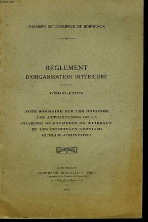 Note Sommaire sur les origines, les attributions de la Chambre de Commerce de Bordeaux et les principaux services qu'elle administre. Classification Dewey : 343-Droit fiscal, commercial, défense