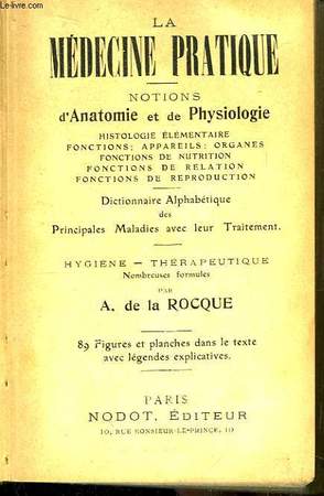 Histologie élémentaire, Fonctions, Appareils, Organes, Fonctions de Nutrition, Fonctions de Relation, Fonctions de Reproductions. Diuctionnaire Alphabétique des Principales Maladies avec leur Traitement. Classification Dewey : 610-Sciences médicales. Médecine