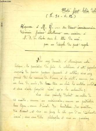 ***. Non daté. In-12. Relié toilé. Bon état, Couv. convenable, Dos satisfaisant, Intérieur acceptable. 123 pages. Reproduction manuscrite. Couverture muette. Tranches rouges.. . . . Classification Dewey : 200-RELIGION