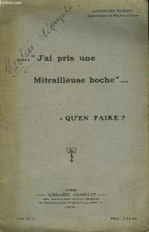 LIBRAIRIE CHAPELOT. 1916. In-12. Broché. Bon état, Couv. légèrement passée, Dos satisfaisant, Intérieur frais. Plaquette de 11 pages illustrées de quelques photos en noir et blanc, dans le texte.. . . . Classification Dewey : 940.3-Première Guerre mondiale 1914-1918