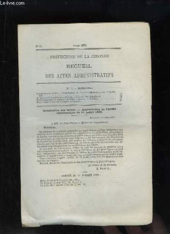 IMPRIMERIE ADMINIS. RAGOT. Avril 1875. In-8. En feuillets. Bon état, Couv. convenable, Dos satisfaisant, Non coupé. Fascicule de 8 pages, paginées de 81 à 88. . . . Classification Dewey : 908.447-Régionalisme : Aquitaine