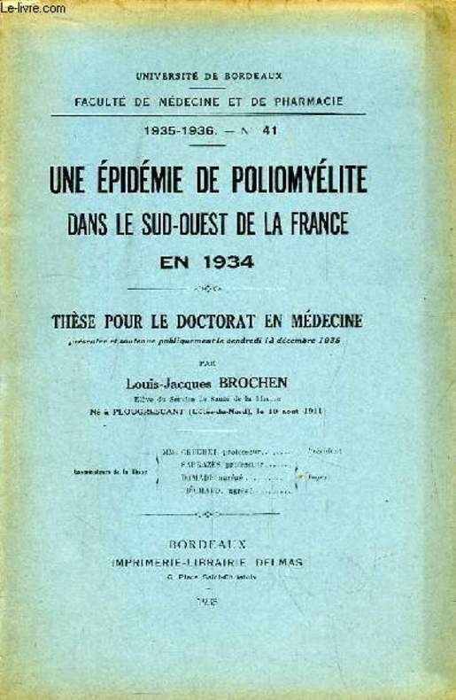 Université de Bordeaux - Faculté de Médecine et de Pharmacie, Année 1935 - 1936 Classification Dewey : 610-Sciences médicales. Médecine