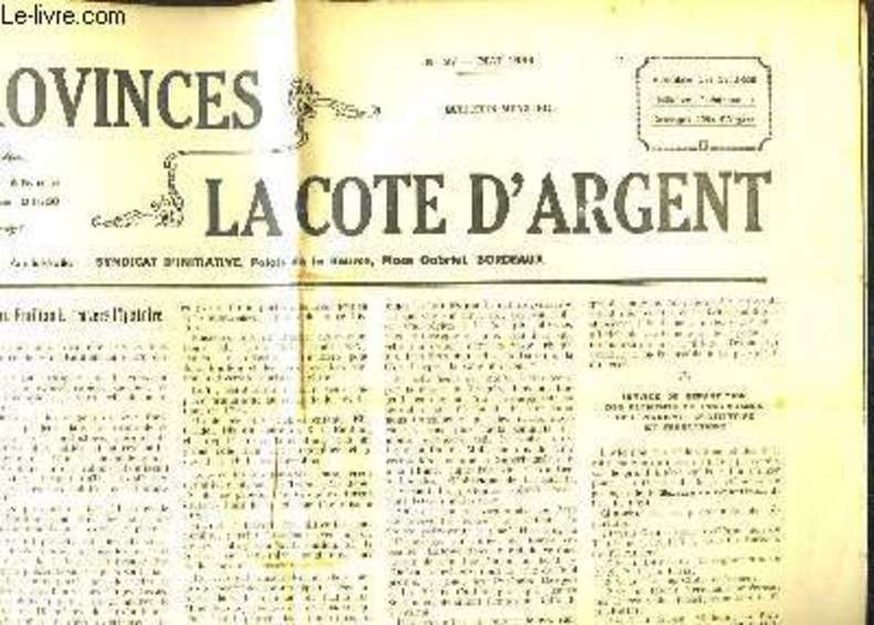 "FEDERATION DES SYNDICATS D'INITIATIVE ""GUIENNE ET GASCOGNE, CÔTE D'ARGENT"". Mai 1939. In-12. Broché. Bon état, Couv. convenable, Dos satisfaisant, Intérieur acceptable. Journal plié de 4 pages. Quelques encarts publicitaires illustrés en noir et blanc.. . . . Classification Dewey : 70.1-Journaux"