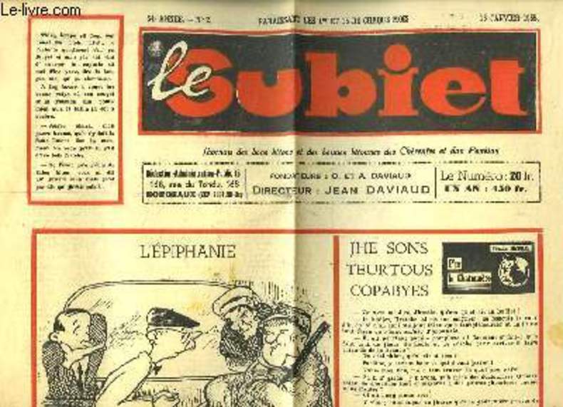 CHEZ L'AUTEUR. 15 janvier 1955. In-12. Broché. Bon état, Couv. convenable, Dos satisfaisant, Intérieur frais. Journal en parlanjhe (saintongeais) de 4 pages. Quelques dessins en noir et blanc, dans le texte.. . . . Classification Dewey : 70.1-Journaux