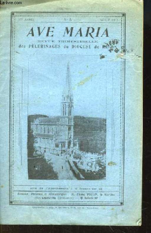 IMP. ANCIAUX P.. Août 1922. In-12. Broché. Etat d'usage, Couv. défraîchie, Dos satisfaisant, Intérieur frais. 16 + 12 pages + 1 supplément de 8 pages.. . . . Classification Dewey : 200-RELIGION