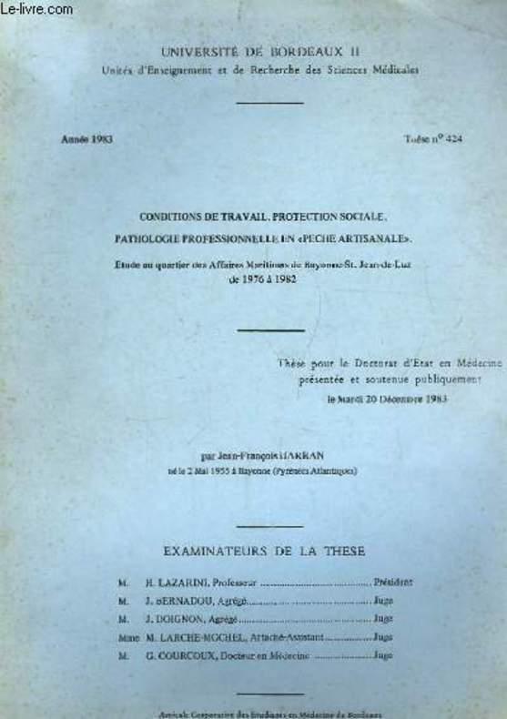 Université de Bordeaux II - Etude au quartier des Affaires Maritimes de Bayonne - Saint-Jean-de-Luz de 1976 à 1982. Classification Dewey : 610-Sciences médicales. Médecine