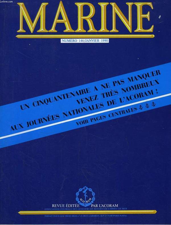 L'ACORAM. Janvier 1990. In-4. Broché. Très bon état, Couv. convenable, Dos satisfaisant, Intérieur frais. Magazine de 80 pages. Nombreuses photos en noir et blanc, dans le texte. . . . Classification Dewey : 386-Marine