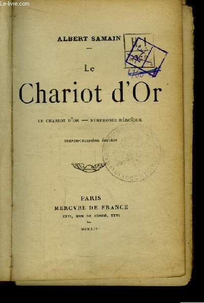 SAMAIN AlbertLe Chariot d'or - Symphonie héroïque. LAS - Édition originale.Paris, Société du Mercure de France. in 8°, belle reliure demi-maroquin à coins.Édition originale tirée à 38 exemplaires, celui-ci (N°35) un des 29 sur Hollande. Avec une Lettre Autographe de Léon Bocquet montée sur onglet de 3 pages et adressée à Fernand Gregh, membre de l'institut et poète