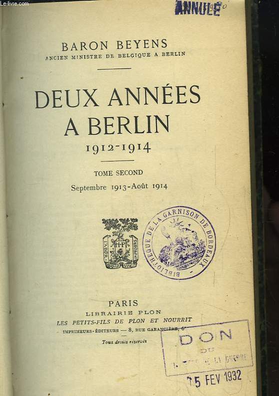 PLON ET NOURRIT. 4 sept. 1931. In-8. Relié. Bon état, Couv. légèrement passée, Dos satisfaisant, Intérieur acceptable. 330 pages. Etiquette de code sur la coiffe en-tête et tampons de bibliothèque sur la page de titre et dans quelques marges.. . . . Classification Dewey : 940.3-Première Guerre mondiale 1914-1918