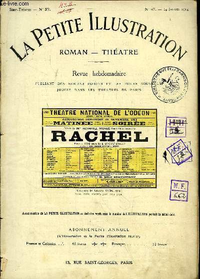 LA PETITE ILLUSTRATION N°47 - Série Théâtre N°27. 24 janvier 1914. In-4. Broché. Etat d'usage, Couv. légèrement passée, Dos satisfaisant, Intérieur acceptable. 36 pages. Quelques photos en noir et blanc, dans le texte. Couvertures brochées, conservées. Couverture muette, de bibliothèque. Etiquette de code sur la coiffe en-tête et tampons de bibliothèque sur la page de titre et dans quelques marges.. . . . Classification Dewey : 792-Théâtre