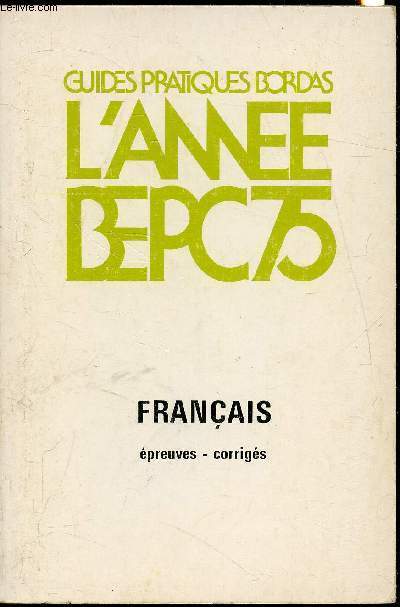 Bordas. 1975. In-12. Broché. Etat d'usage, Couv. défraîchie, Dos satisfaisant, Intérieur acceptable. 187 pages.. . . . Classification Dewey : 372.6-Livre scolaire : français