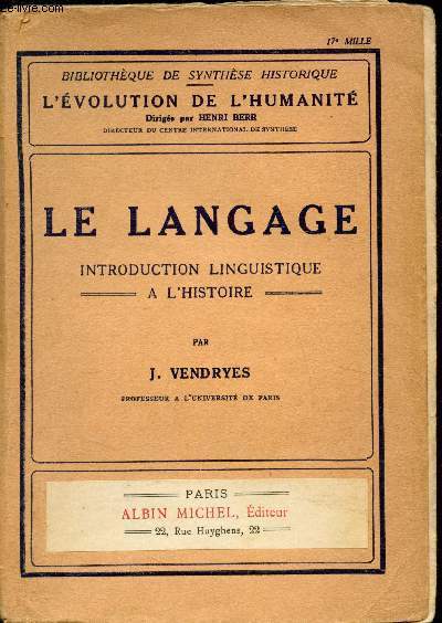 'L'Evolution de l'Humanité', Synthèse collective, III, dir. par Henri Berr. Avec un nouvel appendice bibliographique. Classification Dewey : 410-Linguistique