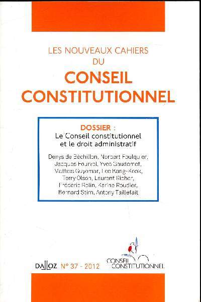 Dalloz. 2012. In-8. Broché. Bon état, Couv. convenable, Dos satisfaisant, Intérieur frais. 255 pages. n° 37 - 2012.. . . . Classification Dewey : 342-Droit administratif, constitutionnel, public