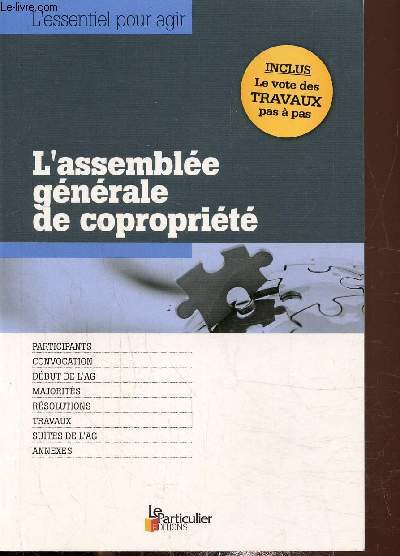 Table : ChI. Section I - Les textes, Section II. Un règlement de copropriété, ChII. Section I. L'assemblée générale, II. Les différentes majorités ... Classification Dewey : 340-Droit