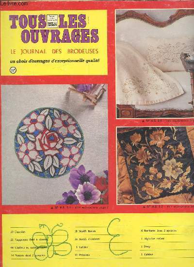 Sommaire : Coussins- Napperons dont 6 ajourés- Nappes dont 2 ajourées- Bordures dont 2 ajourées... Classification Dewey : 70.49-Presse illustrée, magazines, revues