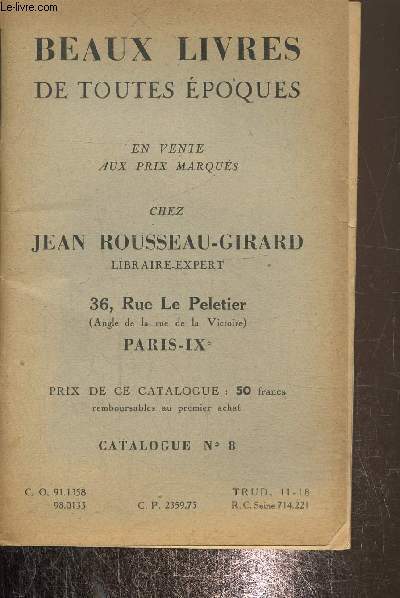 Les ouvrages sont expédiés à réception du règlement, les cartes bleues, chèques , virements bancaires et mandats cash sont acceptés. Les frais de port pour la France métropolitaine sont forfaitaire : 6 euros pour le premier livre , 2 euros par livre supplémentaire , à partir de 49.50 euros les frais d'envoi sont de 8€ pour le premier livre et 2€ par livre supplémentaire . Pour le reste du monde, un forfait, selon le nombre d'ouvrages commandés sera appliqué. Tous nos envois sont effectués en courrier ou Colissimo suivi quotidiennement.