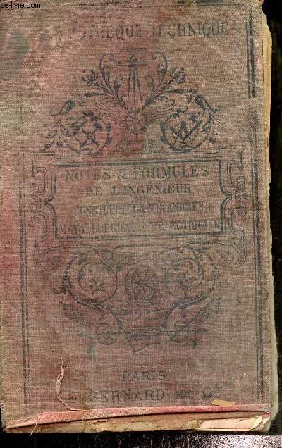 E.Bernard et cie. Non daté. In-12. Broché. Etat passable, Plats abîmés, Dos abîmé, Mouillures. 1002 pages. Certaines pages sont désolidarisées. Fortes mouillures sur les premières pages et sur la couverture.Couverture désolidarisée.. . . . Classification Dewey : 620-Art de l'ingénieur et activités connexes