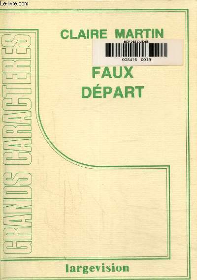 largevision/ Les editions e.l.v.o.. Non daté. In-8. Broché. Bon état, Couv. convenable, Dos satisfaisant, Intérieur frais. 142 pages. Exemplaire de bibliothèque recouvert d'un film transparent. Etiquette sur le premier plat et au dos. Tampon sur certaines pages. Range fichette sur la dernière page. Texte en gros caractères.. . . . Classification Dewey : 840-Littératures des langues romanes. Littérature française