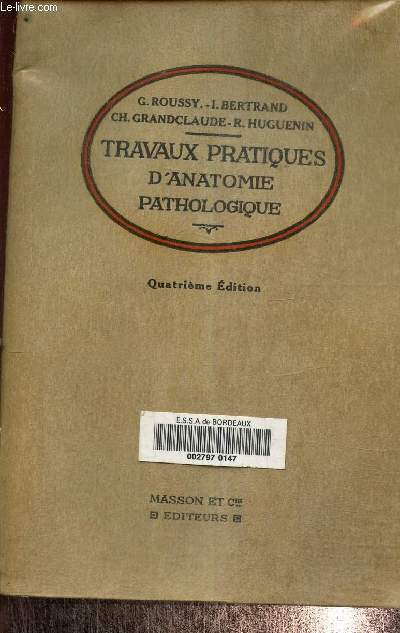 Livre. Nombreuses illustrations. Préface du professeur Pierre Marie. Editions Masson et Cie, 1917.