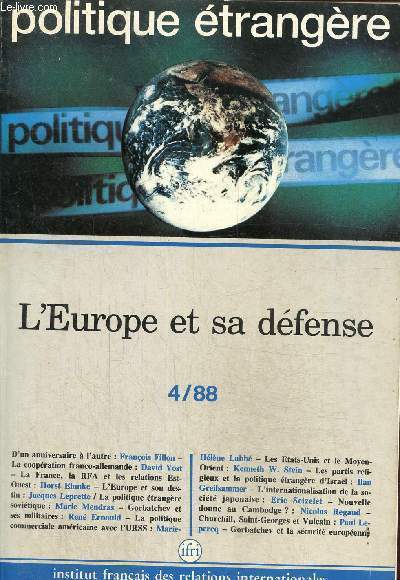institut français des relations internationales. 1988. In-8. Broché. Bon état, Couv. convenable, Dos satisfaisant, Intérieur frais. Paginé de 819 à 1042.. . . . Classification Dewey : 70.49-Presse illustrée, magazines, revues