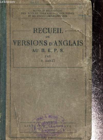 Librairie Delagrave. 1934. In-12. Broché. Etat passable, Plats abîmés, Dos fané, Papier jauni. 96 pages. Nombreuses annotations au crayon à papier. Tampon sur la page de titre et la couverture.. . . . Classification Dewey : 372.65-Livre scolaire : langues