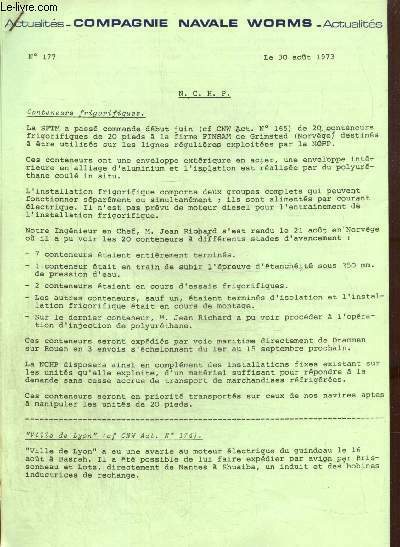 Compagnie Navale Worms. 1973. In-4. Broché. Bon état, Couv. convenable, Dos satisfaisant, Intérieur frais. 5 + 14 pages.. . . . Classification Dewey : 386-Marine