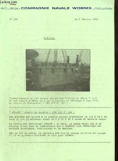 Compagnie Navale Worms. 1974. In-4. Broché. Bon état, Couv. convenable, Dos satisfaisant, Intérieur frais. 8 + 10 pages.. . . . Classification Dewey : 386-Marine