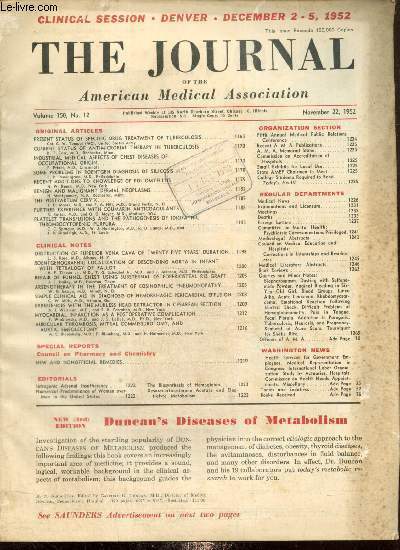 American Medical Association. 1952. In-4. Broché. Etat d'usage, Couv. partiel. décollorée, Dos satisfaisant, Intérieur frais. Pages 1167 à 1268 + 86 pages de planches publicitaires. Texte sur deux colonnes. Quelques photos monochromes dans le texte. Texte en anglais.. . . . Classification Dewey : 420-Langue anglaise. Anglo-saxon