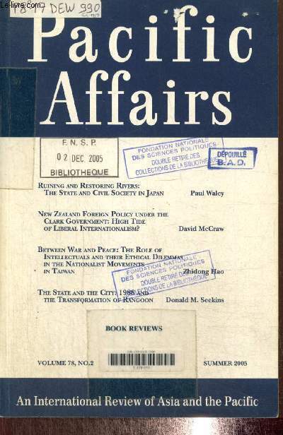 Sommaire : Ruining and Restoring Rivers : The State and Civil Society in Japan (Paul Waley) / The State and the City, 1988 and the Transformation of Rangoon (Donald M. Seekins) /... Classification Dewey : 420-Langue anglaise. Anglo-saxon