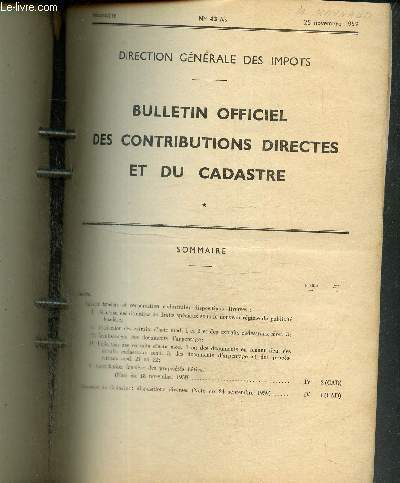 Direction Générale des Impôts. 1959. In-4. Broché. Etat d'usage, Couv. défraîchie, Dos satisfaisant, Papier jauni. 16 pages.. . . . Classification Dewey : 330-Economie