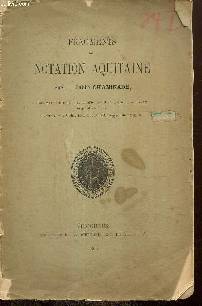 Imprimerie de la Dordogne. 1892. In-8. Broché. Etat passable, Plats abîmés, Dos abîmé, Intérieur acceptable. 8 pages. Plats désolidarisés. Une planche illustrée en noir et blanc hors texte.. . . . Classification Dewey : 908.447-Régionalisme : Aquitaine