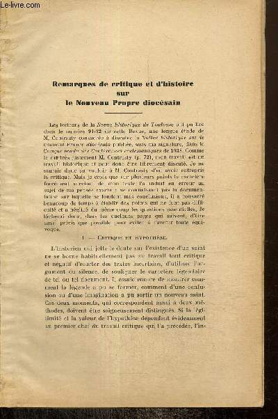 Chez l'auteur. Non daté. In-8. Broché. Etat d'usage, Livré sans Couverture, Dos satisfaisant, Papier jauni. 46 pages.. . . . Classification Dewey : 270-Histoire et géographie de l'Eglise