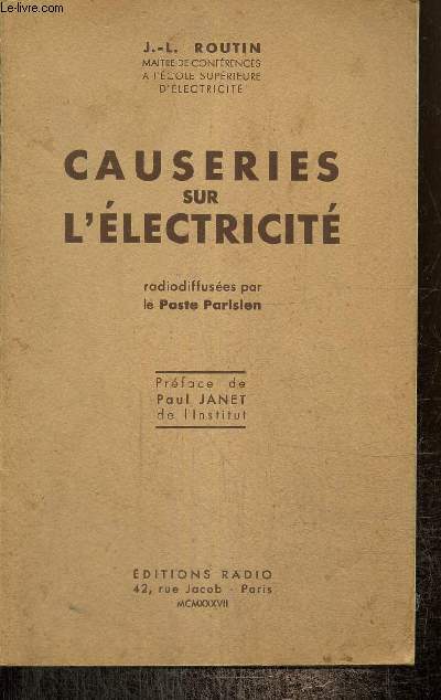 Editions Radio. 1937. In-8. Broché. Etat d'usage, Couv. légèrement passée, Dos satisfaisant, Intérieur acceptable. 78 pages. Quelques illustrations monochromes hors texte.. . . . Classification Dewey : 621-Energie