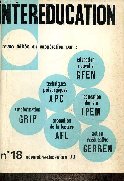 Intereducation. 1970. In-12. Broché. Bon état, Couv. légèrement passée, Dos satisfaisant, Intérieur frais. 112 pages.. . . . Classification Dewey : 370-Education