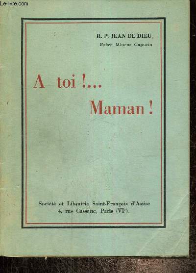 Société et Librairie Saint-François d'Assise. 1945. In-12. Broché. Etat d'usage, Couv. légèrement passée, Dos satisfaisant, Intérieur acceptable. 58 pages.. . . . Classification Dewey : 840.091-XX ème siècle