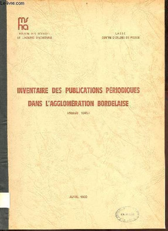 Maison des sciences de l'homme d'Aquitaine. 1980. In-4. Broché. Bon état, Couv. convenable, Dos satisfaisant, Intérieur frais. 55 pages - tampon sur le 1er plat - étiquette collée sur la coiffe en pied - quelques cartes, tableaux et graphiques en noir et blanc dans et hors texte.. . . . Classification Dewey : 908.447-Régionalisme : Aquitaine