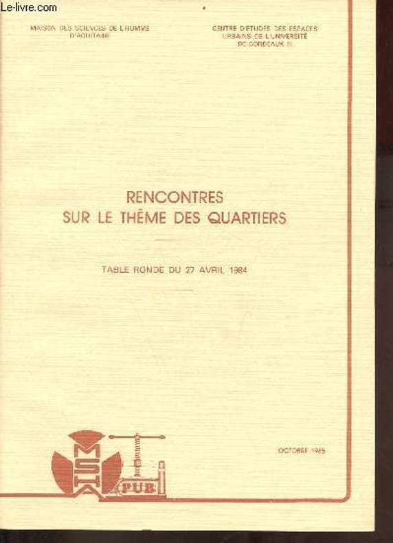 Maison des sciences de l'homme d'Aquitaine. 1985. In-4. Broché. Bon état, Couv. convenable, Dos satisfaisant, Intérieur frais. 137 pages - quelques cartes, plans en noir et blanc hors texte.. . . . Classification Dewey : 300-SCIENCES SOCIALES