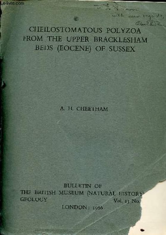Bulletin of the british museum (natural history). 1966. In-8. Broché. Etat d'usage, 1er plat abîmé, Dos abîmé, Intérieur acceptable. 115 pages - dédicace de l'auteur sur le 1er plat - texte en anglais - nombreuses figures en noir et blanc dans et hors texte - tampon sur la page de titre - 1er plat désolidarisé - manque coin en pied sur le 1er plat - coiffes abîmées.. . . . Classification Dewey : 420-Langue anglaise. Anglo-saxon