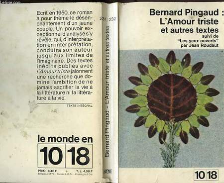 EDITION 10/18 N°0231/232. 1965. In-12. Broché. Etat d'usage, Couv. convenable, Dos satisfaisant, Intérieur frais. 313 Pages.. . . . Classification Dewey : 840-Littératures des langues romanes. Littérature française