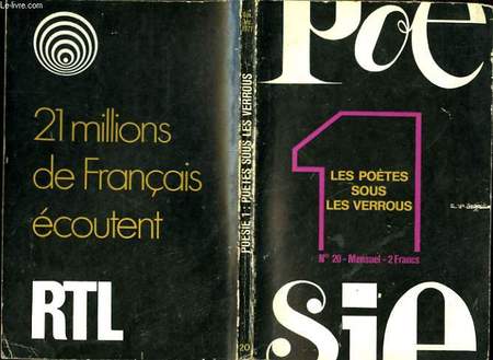 POESIE I - N°20. 1971. In-12. Broché. Etat d'usage, Couv. légèrement passée, Dos frotté, Intérieur frais. 110 pages.. . . . Classification Dewey : 841-Poésie