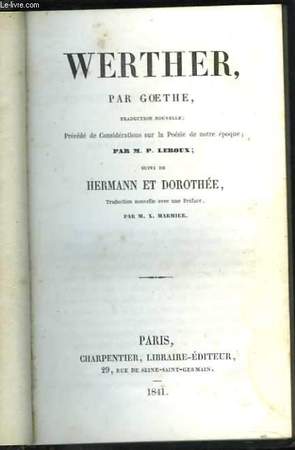 Charpentier. 1841. In-12. Relié demi-cuir. Bon état, Couv. convenable, Dos frotté, Intérieur bon état. 250 pp., à la suite 354 pp., dos à nerfs, titre doré, filet à froid au dos. . . . Classification Dewey : 830-Littératures des langues germaniques