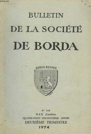 SOCIETE DE BORDA. 1974. In-8. Broché. Bon état, Couv. convenable, Dos satisfaisant, Intérieur frais. Paginé de 134 à 267 - quelques photos en noir et blanc dans et hors texte.. . . . Classification Dewey : 908.447-Régionalisme : Aquitaine