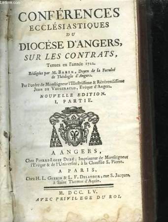 A Angers, chez Pierre-Louis Dubé. 1755. In-12. Relié plein cuir. Etat d'usage, Coins frottés, Dos abîmé, Mouillures. 316 pp., plats frottés avec épidermures, manque de cuir au dos - 1 PHOTO DISPONIBLE.. . . . Classification Dewey : 230-Christianisme. Théologie chrétienne