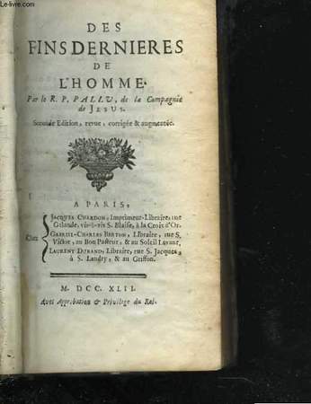 A Paris, Chez Jacques Chardon, G.C. Berton, Laurent Durand. 1742. In-12. Relié plein cuir. Bon état, Couv. défraîchie, Dos satisfaisant, Fortes mouillures. 431 pp., 2 coins frottés, dos à nerfs décoré de caissons dorés, titre doré sur pièce de titre. . . . Classification Dewey : 230-Christianisme. Théologie chrétienne