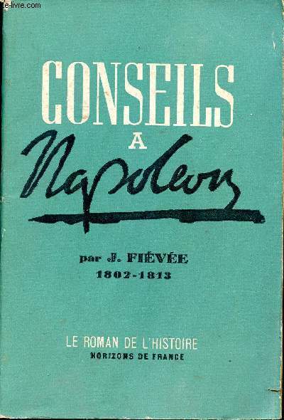 État : Très bon état - Année : sd (1942) - Format : in 8° - Pages : 188pp - Editeur : Horizons de France - Lieu d'édition : Paris - Type : Broché - Collection : Le roman de l'histoire - Commander rapidement : https://www.bons-livres.fr/livre/joseph-fievee/2625-conseils-a-napoleon-1802-1813?lrb