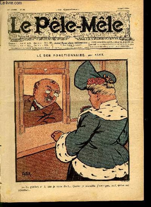 G. Richard. 15 mai 1904. In-4. Broché. Bon état, Couv. convenable, Dos satisfaisant, Intérieur frais. 16 pages, gravures en noir et blanc in-texte. 1ère page en couleurs par Alex, débroché. . . . Classification Dewey : 70.441-Journaux satiriques anciens