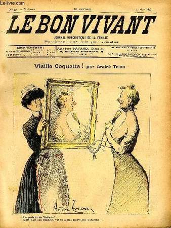 Illustrations pleine page : Vieille coquette par ANDRE TRIOU ; L'homme gros (reflexions des hommes maigre) ; Concours : problème de géométrie ; Les agents flaireurs par SELLIER (gravure couleurs) ; Une belle opération par MARCEL CAPY (gravure couleurs) ; Histoire d'un petite ouvrière sans travaille, de sa charitable amie d'un mauvais drôler par HELLE (gravure couleurs) Classification Dewey : 70.441-Journaux satiriques anciens